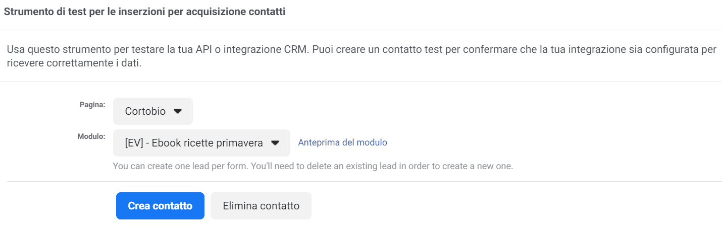 10. Se il test con una mail fittizia di Meta non fosse sufficiente, è possibile utilizzare lo strumento di test per le inserzioni per acquisizione contatti con il quale è possibile simulare la compilazione del Meta Lead Contact form con un indirizzo email reale.