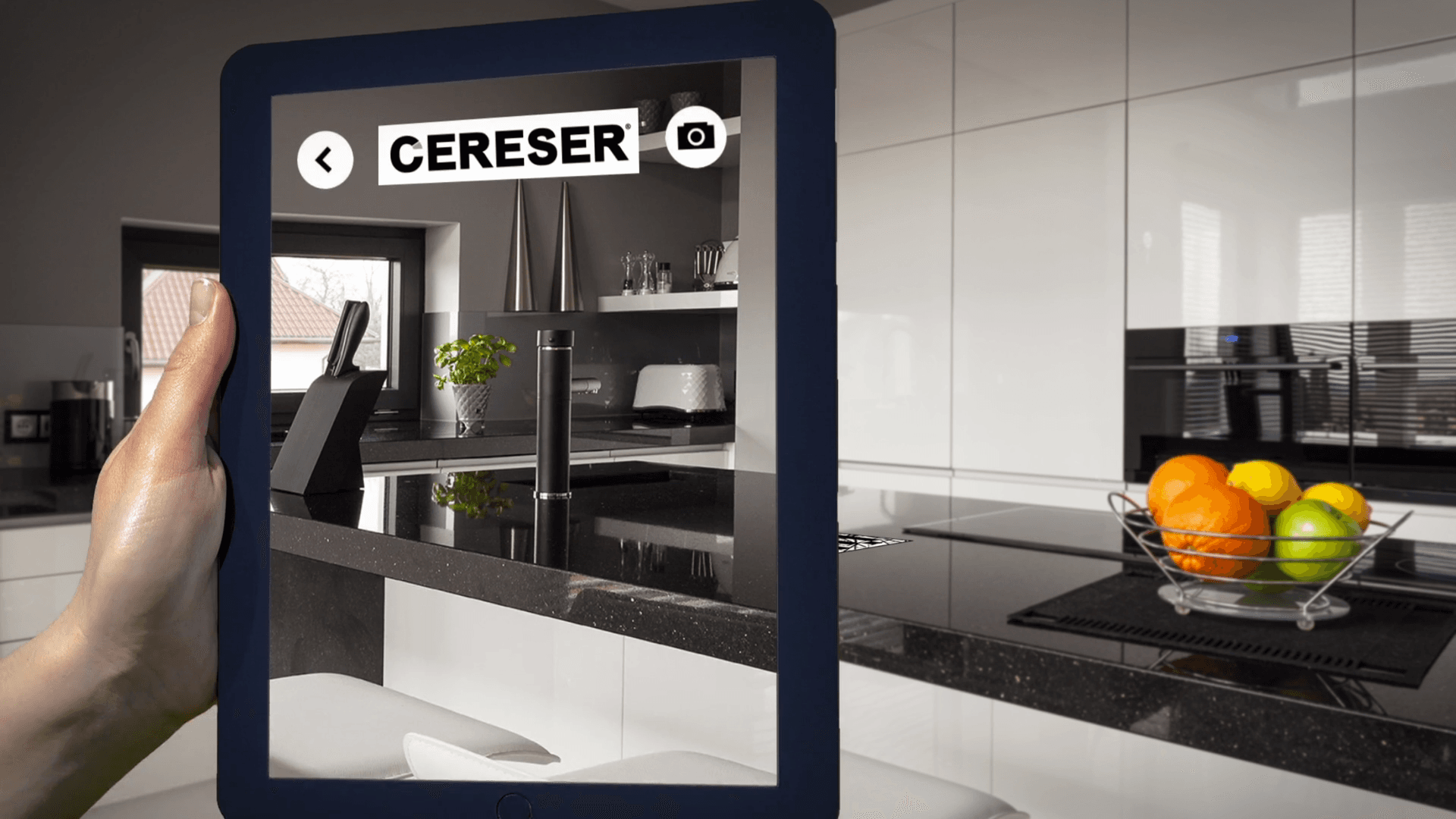 CERESER è un leader indiscusso del settore delle lastre di pietra naturale, come marmi e graniti, e voleva esprimere anche una leadership tecnologica. Tra i diversi progetti di realtà aumentata quello per CERESER spicca per la sua portata in quanto pionieristica applicazione che ha ridefinito lo stato dell’arte del processo di vendita del settore e ha catturato l’attenzione di un’intera edizione del Marmomac, la prestigiosa Mostra Internazionale di Pietre Design e Tecnologie.