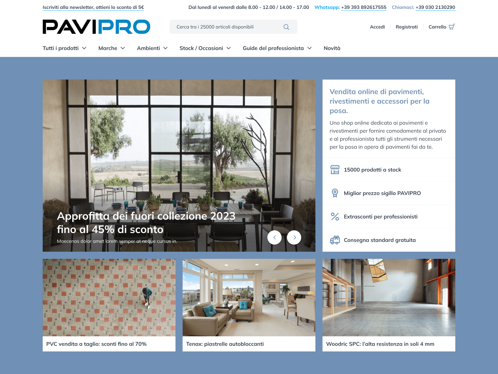 Quando Pavi Pro si è rivolto a noi, l'obiettivo era duplice e ambizioso: espandere la propria presenza online e prepararsi a un'evoluzione del business che andasse oltre il semplice sito vetrina. Inizialmente, la necessità del cliente era una piattaforma che comunicasse l'autorevolezza e la qualità dei loro prodotti, un vero e proprio biglietto da visita digitale. La nostra prima sfida è stata quella di interpretare questa necessità, realizzando un sito web su misura che riflettesse l'identità del brand e stabilisse una base solida.