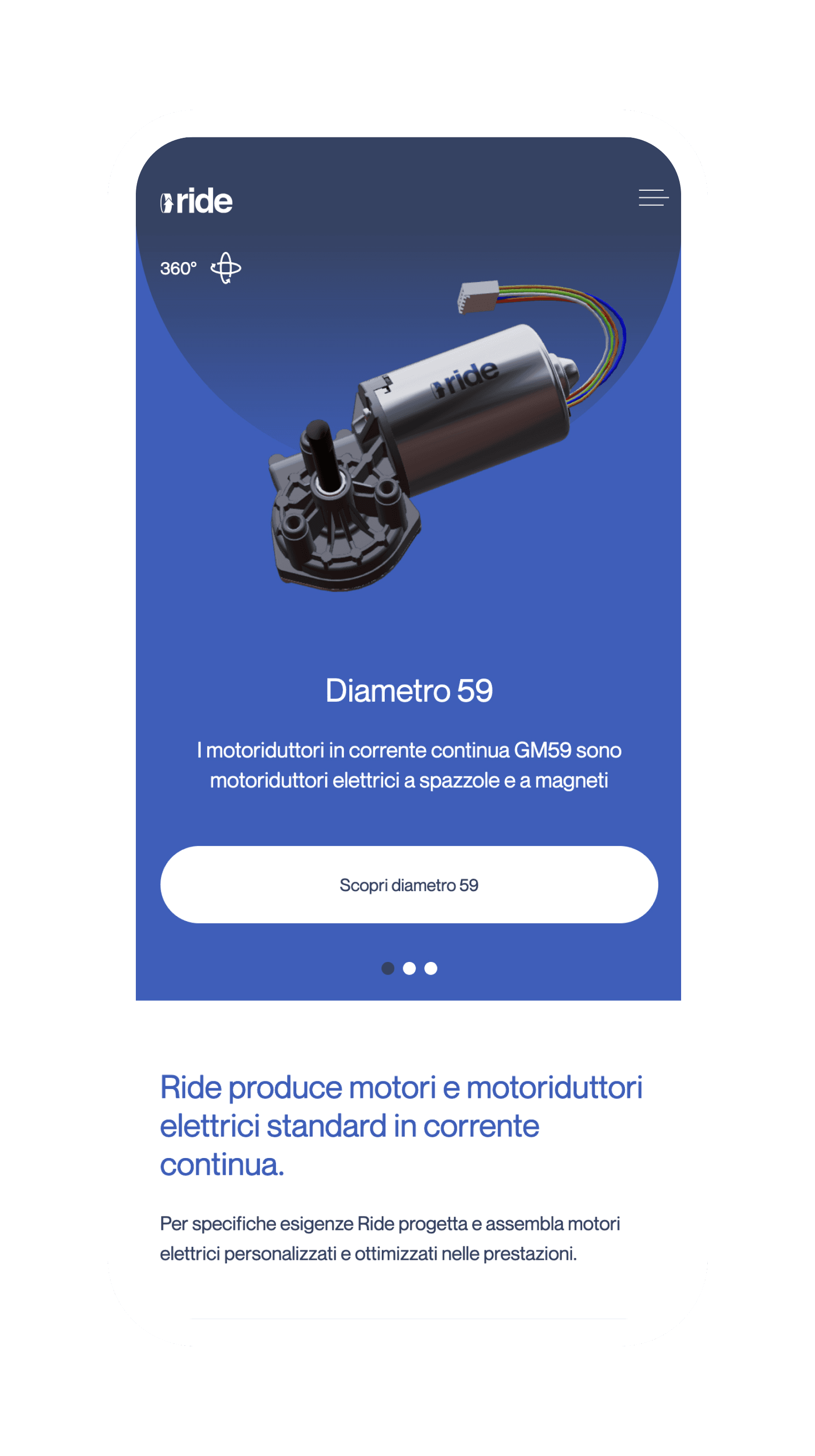 Ride è un primario produttore di motori elettrici CC e motoriduttori, da anni rinnova la sua presenza digitale facendone uno strumento di lavoro utile per i propri clienti. Da questo ha preso il via la riprogettazione del sito internet con simulazione digitale dei prodotti.